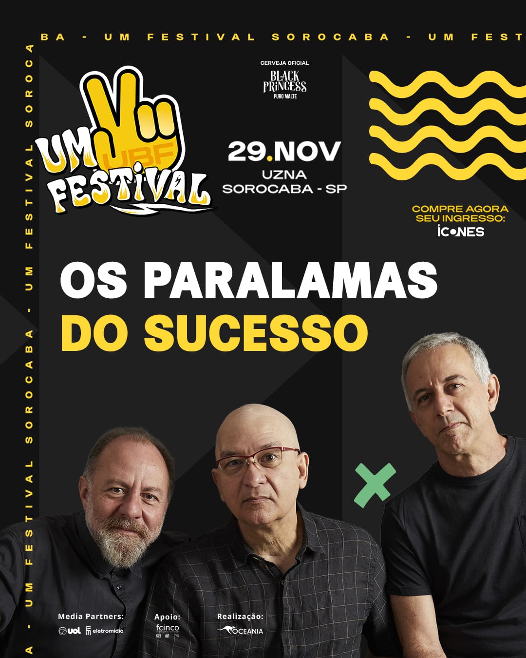 O evento também mudou de endereço e agora será realizado na Uzna, que fica na Av. Liberdade, 5005, no Éden, no dia 29 de novembro (sábado), a partir das 19h. Os ingressos para o festival estão disponíveis, custam a partir de R$ 110 (meia-entrada) e podem ser adquiridos pelo site icones.com.br. A classificação etária é 18 anos.