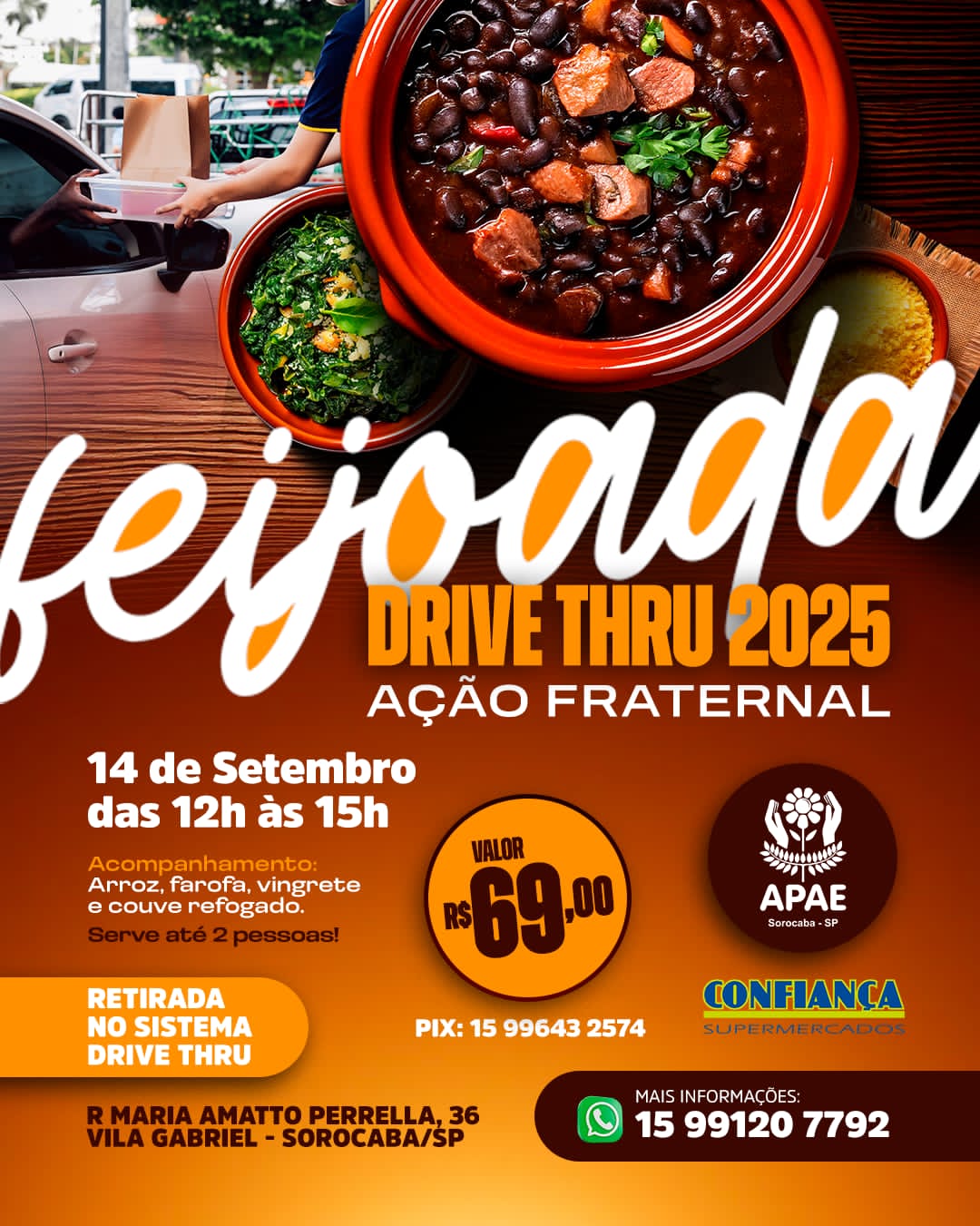 A Apae Sorocaba promove, em parceria com o Confiança Supermercados, a Super Feijoada Solidária, neste domingo, 14, oferecendo uma refeição completa e saborosa em prol da causa social da instituição.