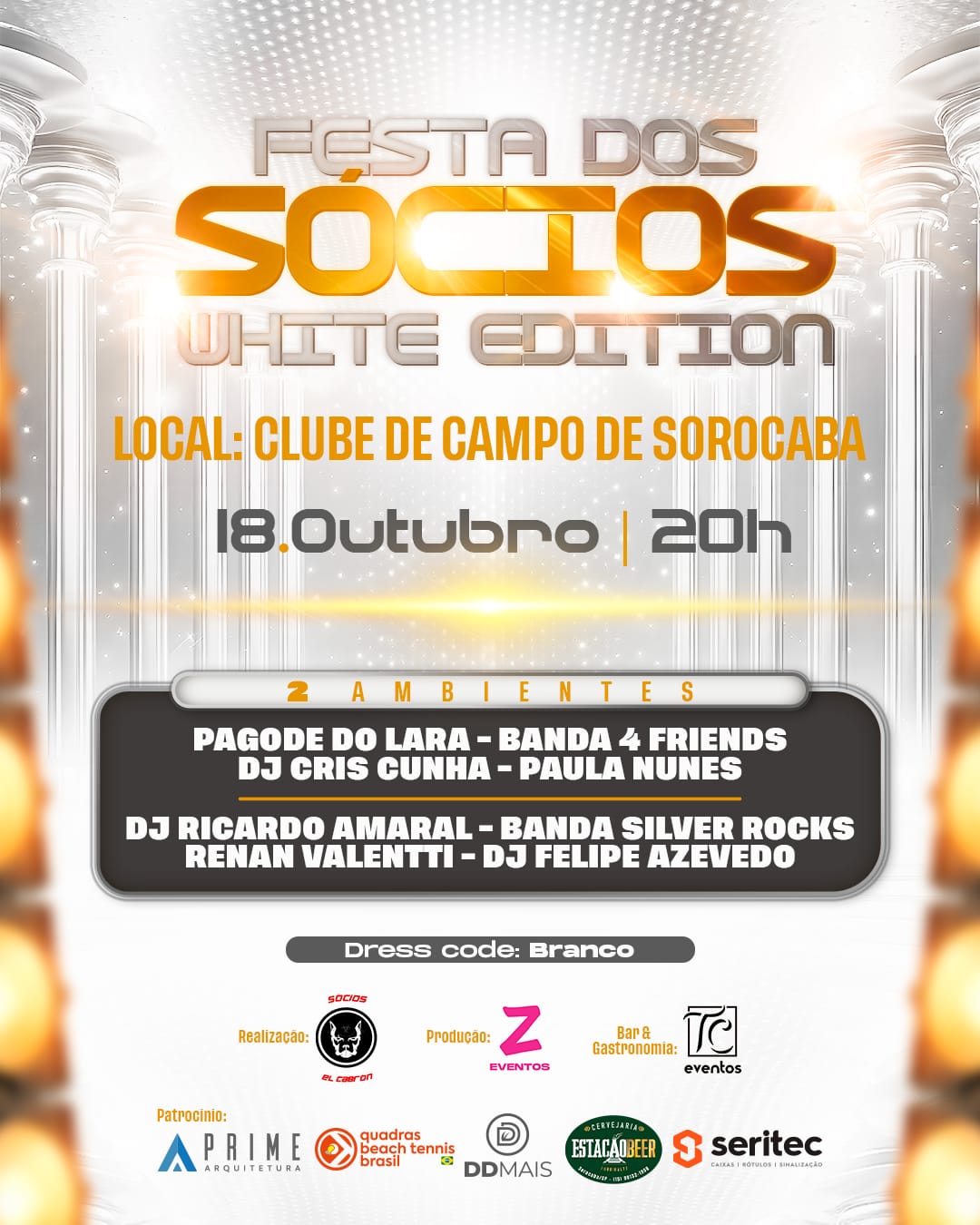“Festa dos Sócios – White Edition” reúne oito atrações musicais em dois ambientes.