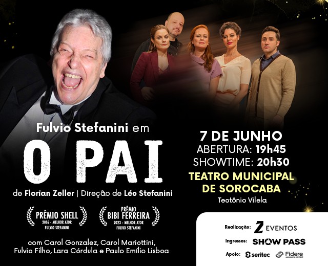 O PAI é um espetáculo teatral que se tornou um grande sucesso de público e crítica. Em cartaz desde 2016, alcançou a marca de 300 apresentações com mais de 100 mil espectadores, e traz no elenco o ator Fulvio Stefanini, com seus 70 anos de carreira e um Prêmio Shell por este trabalho.