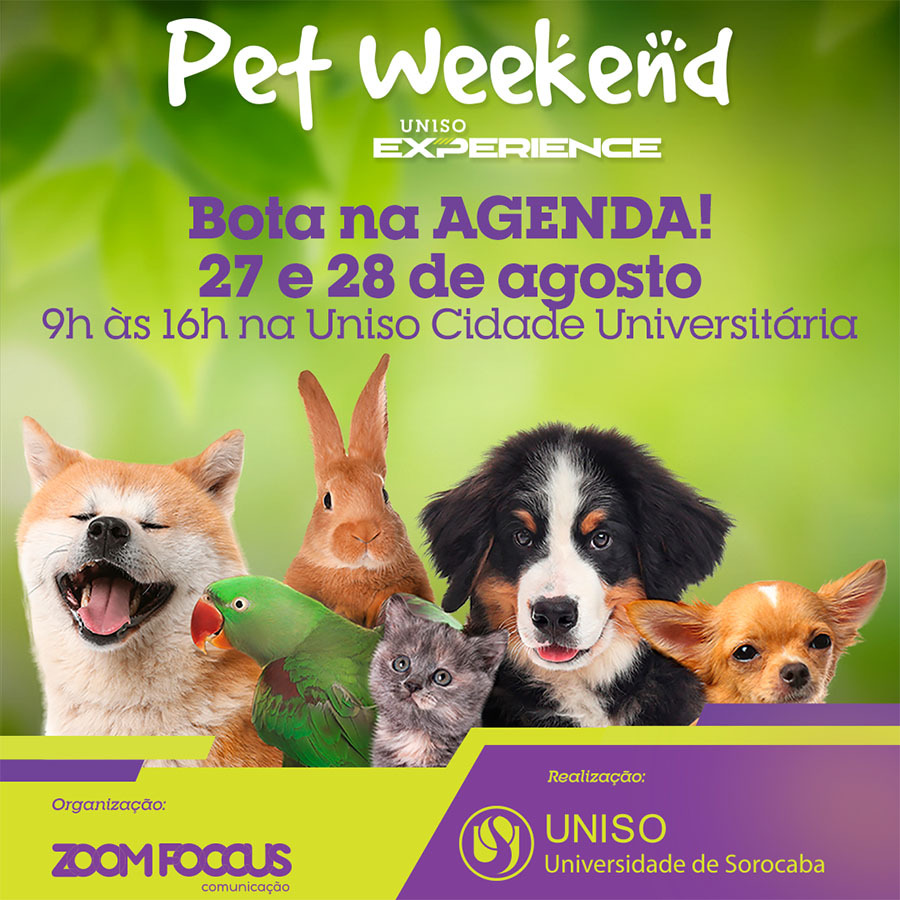 O evento mais animal de Sorocaba e região está chegando. O Pet Weekend – Uniso Experience acontece nos dias 27 e 28 de agosto, das 9h às 16h, no estacionamento do campus Cidade Universitária da Uniso.