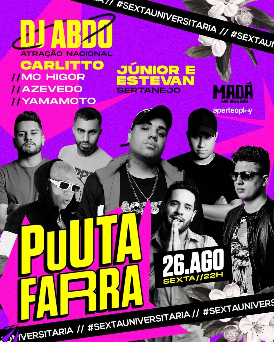 Nesta sexta (26) às 22h tem Puta Farra no Madá, com a participação de várias atrações nacionais.